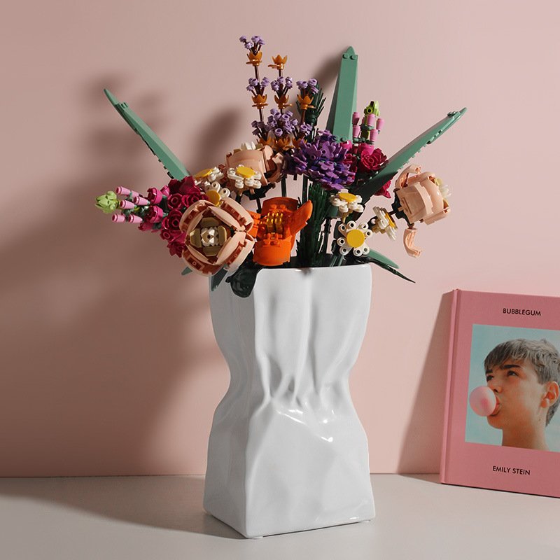 Size: small pleated vase, medium pleated vase, large pleated vase, medium pleated vase + 6 mixed-color hibiscus, medium pleated vase + 6 yellow tulips